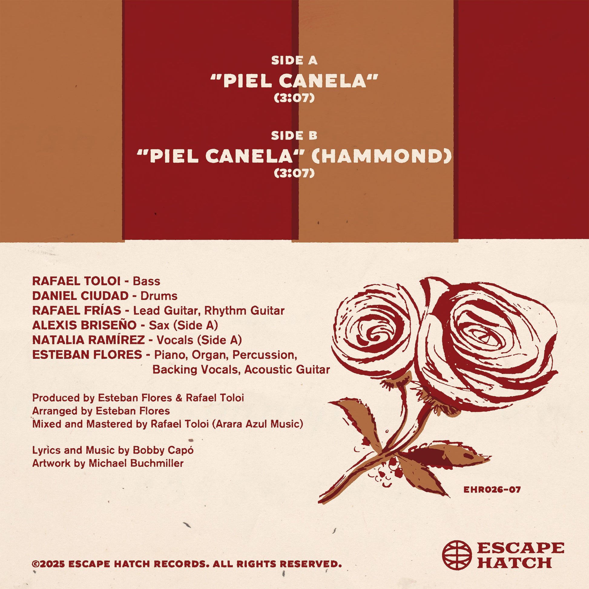 On the B-side, enjoy a rich Hammond instrumental version of "Piel Canela," featuring the saxophone of Alexis Briseño. This interpretation showcases the band’s musicianship, delivering a lush, groove-filled arrangement that invites you to sway, dream, and lose yourself in the tropical vibes.